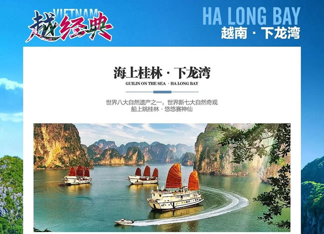 特別聲明:如因越南雨季臺風(fēng)季節(jié),地接社可在不減少景點(diǎn)的情況下,調(diào)整游客的參觀順序,使游客可以參觀到下龍灣海上桂林,如果天氣原因未能參觀下龍灣及天堂島的,則替換為陸上景點(diǎn)。