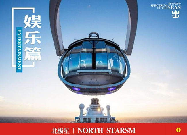 剛剛結(jié)束了岸上觀光, 您有點(diǎn)兒累了?那選擇皇家海洋光譜號(hào)上的【南極 球】感受離開地心引力的刺激, 或者去【皇家大劇院】看一場(chǎng)頂尖的經(jīng)典歌舞 表演吧,讓您在船上就能看到正宗的百老匯表演。還可以靜靜的在【日光浴場(chǎng)】 享受一個(gè)悠閑的下午, 或者和愛(ài)人去【悅音廳】靜聽藍(lán)調(diào)布魯斯的悠揚(yáng), 漫步 舞池!晚上的【 270°觀影廳】會(huì)為大家提供全息數(shù)碼投影, 讓乘客體驗(yàn)引人入 勝的跨界表演和燈光秀。還可以參加船上的各種娛樂(lè)活動(dòng)、興趣課程、健身運(yùn) 動(dòng)、游泳、沖浪、登上北極星等。還可以看電影、或者到娛樂(lè)場(chǎng)開心一把。